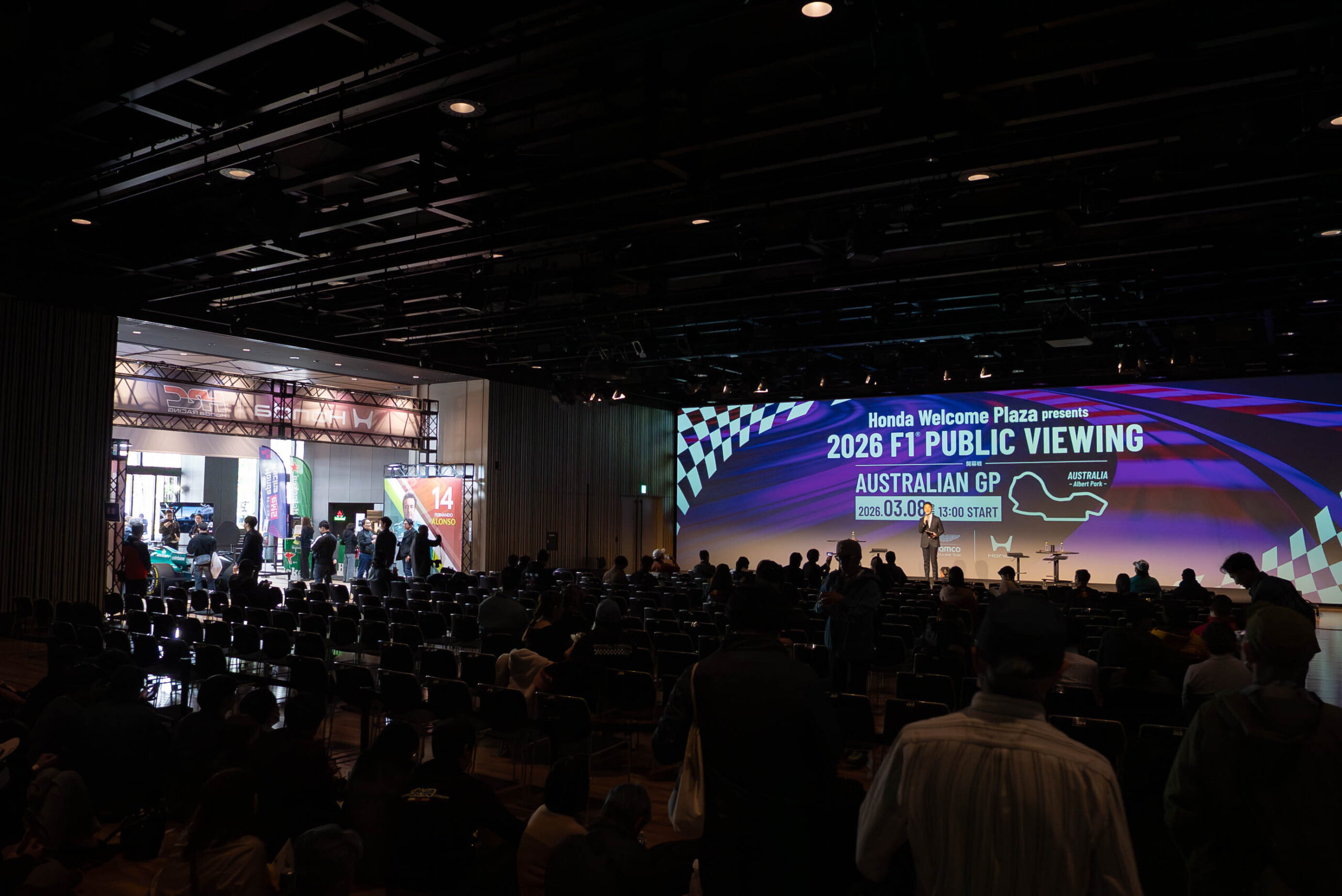 ポートホールにて、本田技研工業(Honda)様主催による「FORMULA 1® オーストラリアグランプリ 2026」のパブリックビューイングが開催されました。 会場内では大画面での白熱のレース観戦に加え、2026年型アストンマーティンF1ショーカーの特別展示や、本格的なレーシングシミュレーターの体験ブース、オリジナルグッズの販売などを展開。 多くのモータースポーツファンにご来場いただき、熱気あふれる空間となりました。
